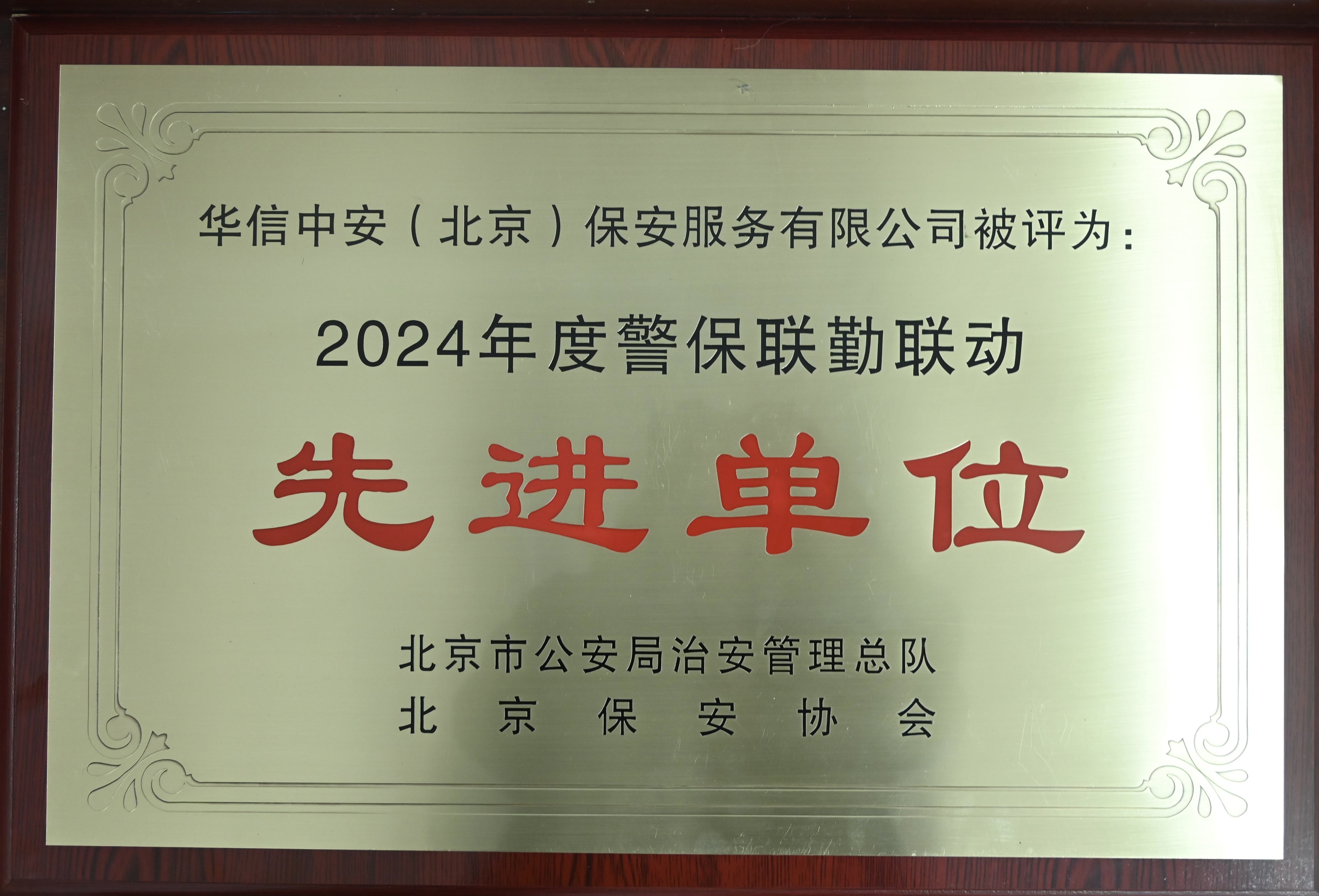 【喜报】 华信中安(北京)保安服务有限公司荣获2024年度警保联勤联动先进单位