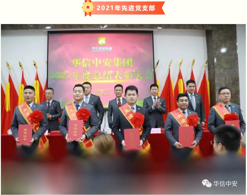 2021年全国分支机构先进集体:天津子公司、广东子公司、第五分公司、第九分公司、河南分公司、管理十四部、管理二十二部、管理三十一部、华信中安埃及办事处、华信中安(兰卡)国际公司、华信中安(辽宁)保安服务有限公司、广西华信中安保安服务有限公司。