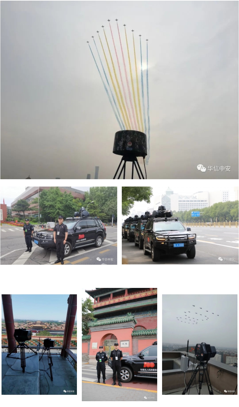 今年"七一"是中国共产党成立100周年。为了庆祝党的百年华诞,6月28日至7月1日,文艺演出《伟大征程》、 "七一勋章"颁授仪式、天安门庆祝大会等系列活动在北京隆重举行。为了确保庆祝活动期间核心区域的绝对安全,华信中安无人机技术大队在公安部无人机防控专班的领导下,圆满地完成核心区域"低慢小"飞行器反制管控任务,为建党百周年庆典的顺利举行做出了应有的贡献。