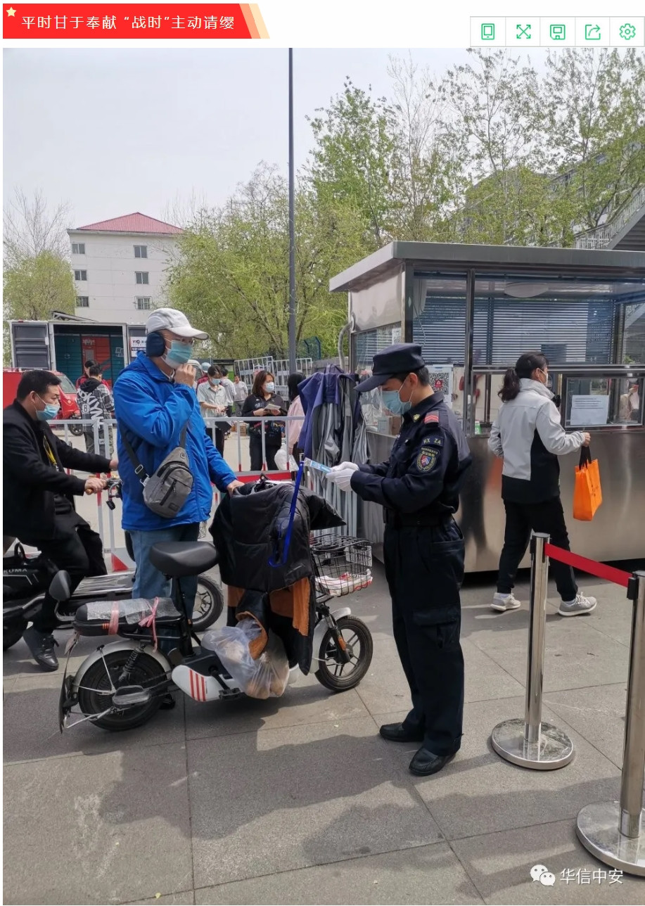 抗击疫情的两个阵地,一个是医院救死扶伤阵地,一个是社区校园防控阵地。我们将时针拨回至2020年初,进入疫情防控非常状态的中国,正在与时间赛跑,举全国之力遏制疫情。此时的北方工业大学为了保卫留校师生的生命安全、守住校园防控的第一道防线,也在进行着一场防疫攻坚战。特殊时期,校警队员在外值岗、巡逻,每天要和数百名陌生人打交道,进入校园的每辆车、每个人都要登记、检查,还要对人员进行情况了解、核验证件、测量体温,负责校内的治安、防火、交通、监控、安全隐患排查等工作,服务于学校的防疫攻坚战。疫情最严重的时期,学校北门和南门是出入校园的仅有通道,由于工作量突然加大,人员不足成为掣肘。潘玉玺主动请缨,从指挥中心的岗位申请到一线把守校门。这不仅意味着他将离开相对舒适的室内工作环境,而且要接触大量的外来人群,将自己置于可能直接与病毒接触的危险之中。校园防疫,工作压力大、强度高,往往一项工作才开始,第二项、第三项工作就接踵而至,于是加班加点成了防疫期间潘玉玺工作的常态。门岗上他冒着低温严寒,坚守在校园防疫的前沿阵地,有时也会遇到个别人对他的工作的不理解,潘玉玺都会耐心解释、反复劝说、坚持原则;校园封闭管理初期,学校对留校学生采取统一管理,他的身影就出现在帮助学生运送行礼的队伍里;封闭式管理有效地降低了人员流动,但是也给后续的管理和服务带来了难题。由于不明情况的外部人员、车辆无法进入校园,校内家属区的居民在校外采购的物品运不进来。校警队的队员们又一次扛起了本不在岗位职责内的任务,主动为有困难的家属将大件物品送货上门。在很多人看来,被赋予重任是苦差事,加班加点工作更是苦不堪言,而潘玉玺总是身先士卒肩负起别人不愿意干的重任,前不久学校组织学生在体育馆接种新冠疫苗,作为项目业务骨干的潘玉玺又一次主动申请加班,圆满完成了学生疫苗接种期间现场秩序维护的任务。面对领导的表扬潘玉玺只是轻描淡写的说干好工作是本分,这都是应尽的职责。