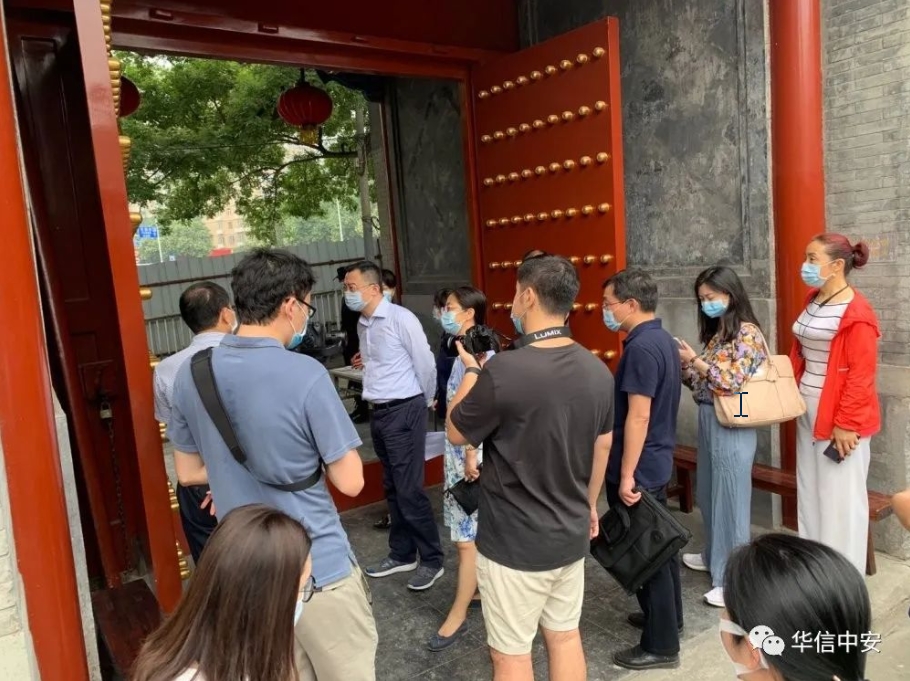 2020年7月17日上午8点40,北京艺术博物馆领导接待北京市市委宣传部副部长、市文物局局长、市文物局保卫处副处长、市文物局财务部、市财政局局长、市法委、国宝局等多个市级单位领导前来万寿寺检查工作。就下一步万寿寺东路2期工程开工、考古勘探,和1期工程完善装修,以及安全保障措施加强等相关事宜展开讨论。华信中安驻勤保安队全体队员坚守岗位恪尽职守,出色完成各项勤务工作,受到了多方领导的好评。