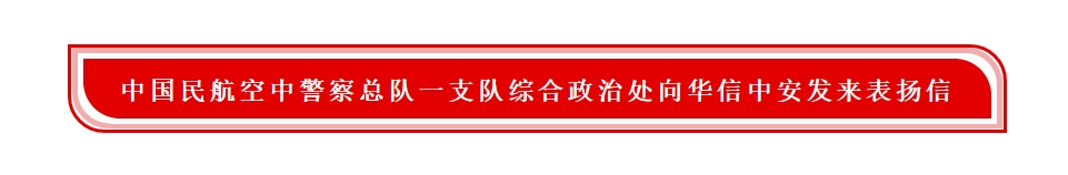 2020年7月31日,中国国际航空股份有限公司综合保障部物业管理中心向华信中安发来表扬信,对华信中安驻中国国际航空股份有限公司国航、总部大楼、信息大楼、飞行总队、空勤公寓、国航宾馆AIE、航安路、运行大楼、北区项目的全体保安队员,在各项目队长的带领下勇挑重任,放弃与家人团聚,投入到疫情防控工作中,夜以继日坚守在工作岗位,不忘担当不辱使命,为国航院区织起抵抗疫情的坚固防线提出表扬,同时希望驻勤队伍继续坚持自上勤以来半军事化管理的优良作风,为抗疫攻坚战取得全面胜利继续努力。