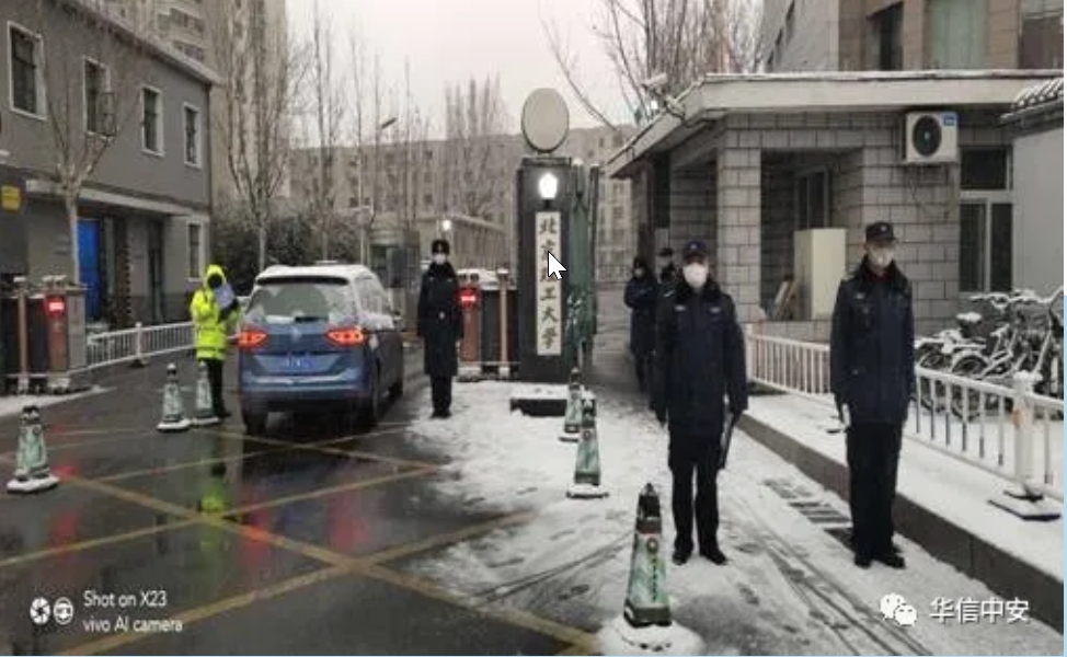 作为门岗的安保人员,只要走上值班岗位、进入工作状态,一个接着一个的人员体温测量、查证登记,一辆接着一辆的车辆验证核实,几乎没有一点闲暇时间。守住校园安全的大门就是为北京理工大学筑起疫情防控第一道防线,容不得一丝疏忽大意。自疫情爆发以来,华信中安驻北京理工大学保安队门岗平均每天登记测温放行千余人次,劝阻不符合入校规定人员若干。刘加滨说自实施疫情防控部署这段时期以来,我们很感谢留校师生员工能够积极配合门岗检查登记工作,他们的微笑就是对我们最大的支持和肯定,我们也深切感受到很多人从开始对我们工作的不理解不配合到给予充分支持的变化。在具体的工作中,绝大部分人员都很理解和支持我们的工作,主动出示证件,积极配合登记。但疫情爆发初期,病毒蔓延还没有引起大家的足够重视,也有不少人抱怨:"现在进个校门怎么这么麻烦"对我们的登记、检查、测温抱有抵触情绪。我们的队员需要耐心解释劝阻,并悉心提醒戴好口罩尽量减少外出。后期随着防疫形势的严峻以及宣传力度的加大,大家对我们保安员的工作给予了充分的肯定,不少家属院的职工说:"看到你们坚守岗位,就说明我们的校园是安全的,我们心里也踏实不少。"甚至有很多素不相识的陌生人看到保安员冰天雪地里执勤站岗,多次为我们队员送来了暖宝宝、矿泉水和宝贵的防疫物资。大家的理解和支持就是我们工作最大的动力也激发了队员们更大的工作热情。