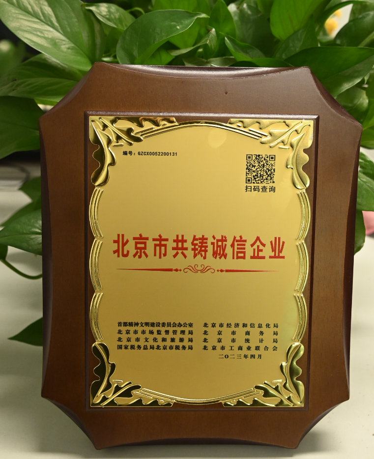 “百业万企”共铸诚信文明北京活动自2022年启动,旨在充分展示首都诚信建设成果,激励各行各业全面落实社会信用体系建设各项任务,积极构建诚信文明北京。经过资格查验、信用审查、专家评议、部门审核、社会公示等一系列程序,公司凭借信用制度健全、经营管理规范、社会责任落实、公众评价优良等优势,成功评为“北京市共铸诚信企业”,成为北京市百万企业中具有示范作用的先进典型。